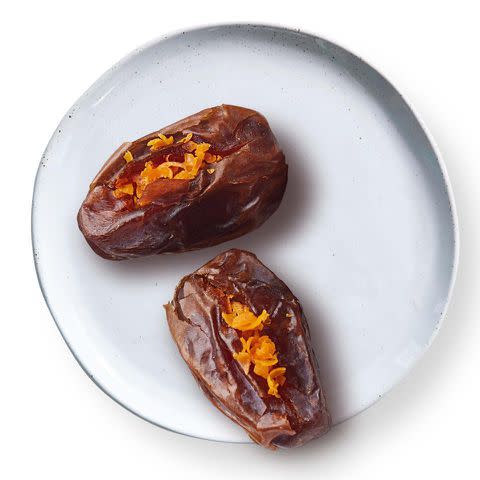 Medjool dates are softer than their semi-dry cousins Deglet Noor and therefore much easier to stuff with almonds. This healthy snack recipe can also be turned into an addicting appetizer by adding some blue cheese to the filling.